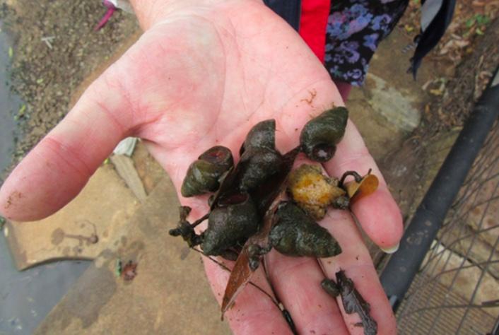 The large Asian freshwater snail, Sinotaia cf. quadrata (Benson, 1842) discovered at Zoo Lake, Johannesburg in 2019. The snails reach considerable densities in the water, a characteristic which would favour their use as a food species. (Sue Taylor)