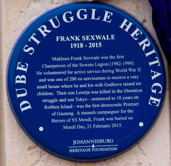 Frank Sexwale blue plaque part of the Dube Struggle Heritage series (Gail Wilson)