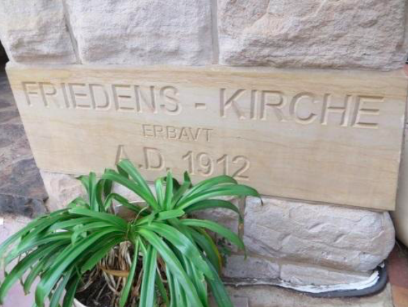Stained Glass windows, blue plaque and foundation stone of the 1912 Lutheran Friedenskirche in Hillbrow (Brett McDougall)