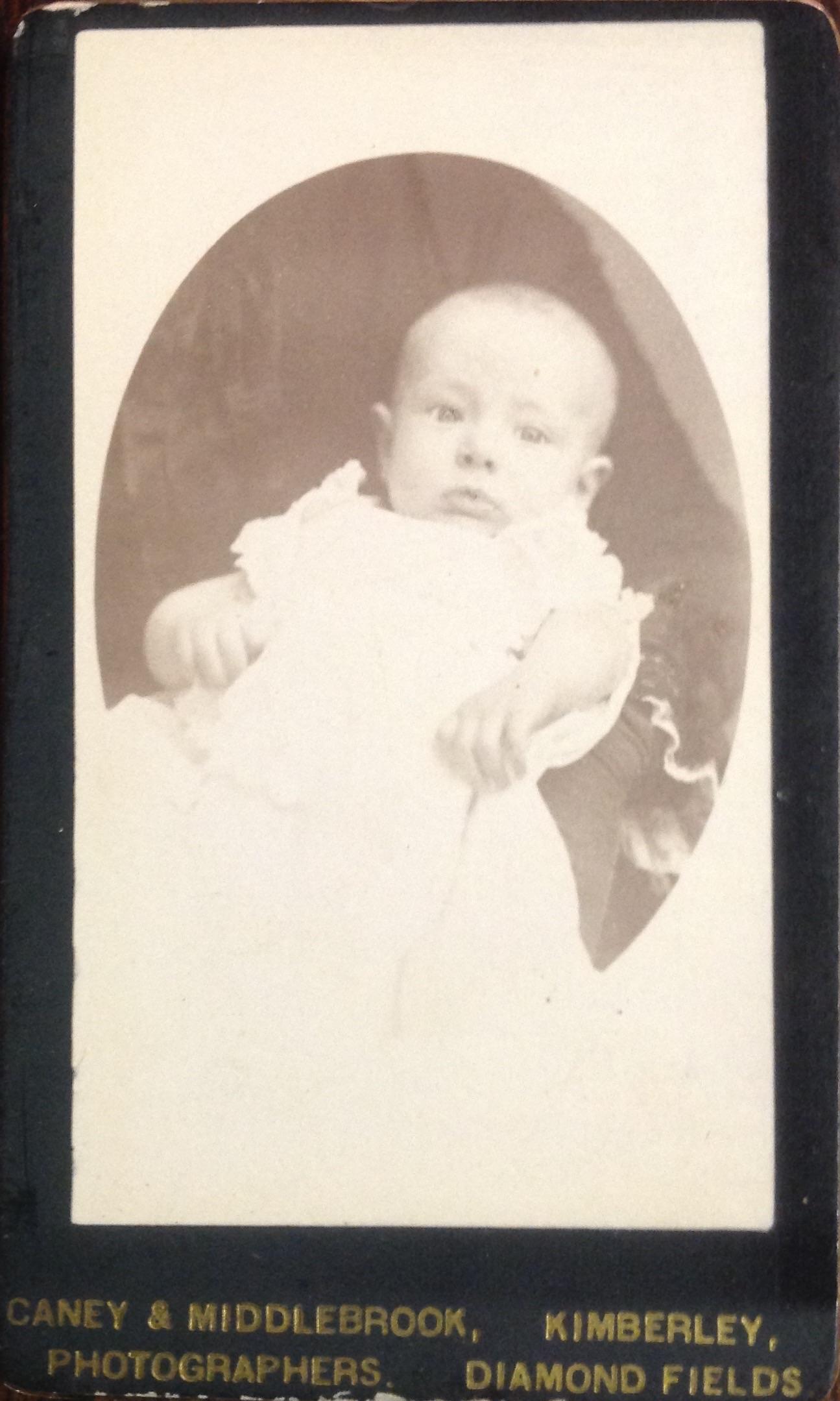 Carte-de-Visite format image taken in William Laws Caney and Middlebrook’s Kimberley based studio of unknown child (Circa mid 1870s)