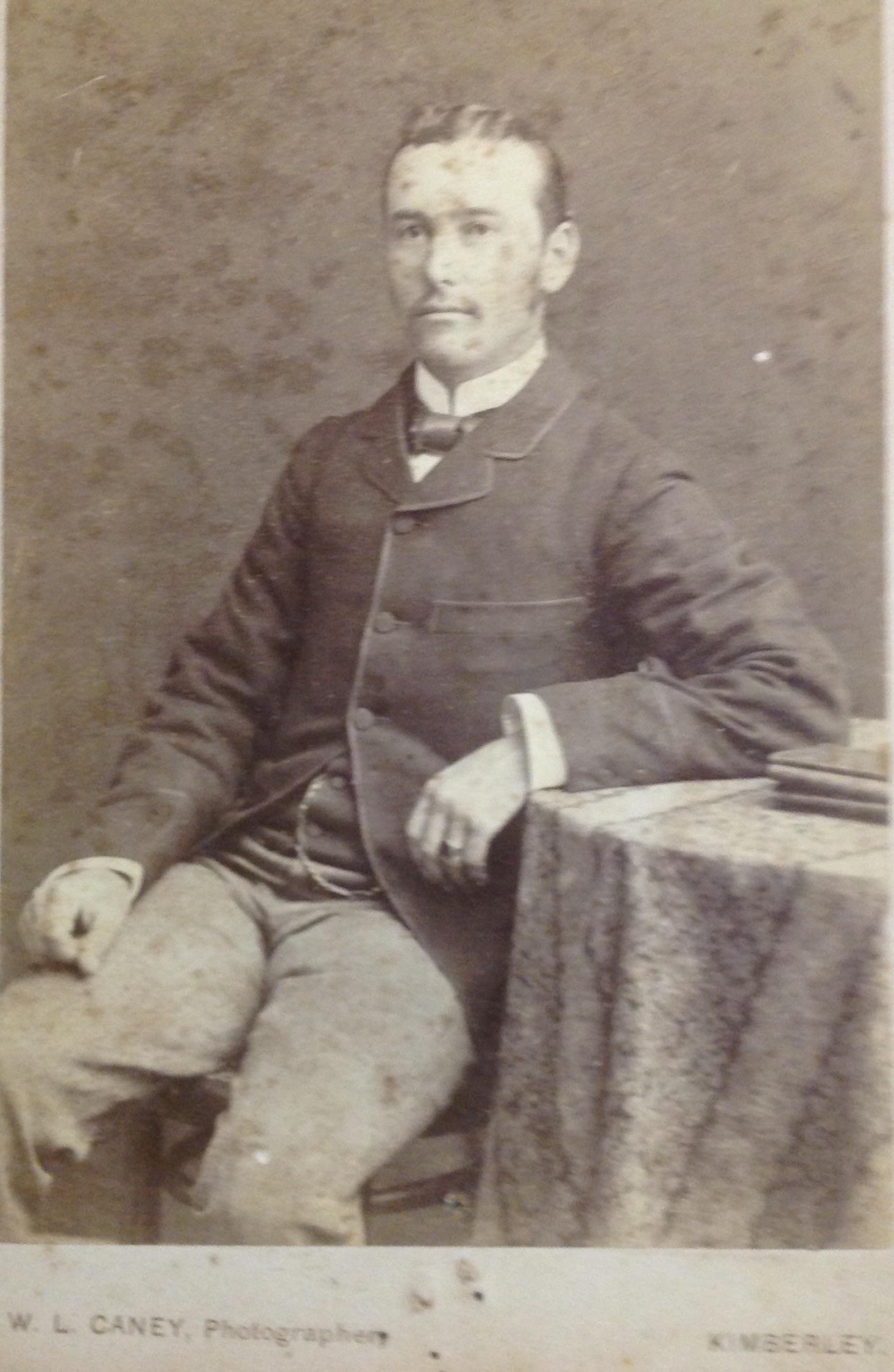 - Centre - Cabinet Card format photograph of unknown gentleman taken in William Laws Caney and Middlebrook’s Kimberley based studio (Circa 1886)