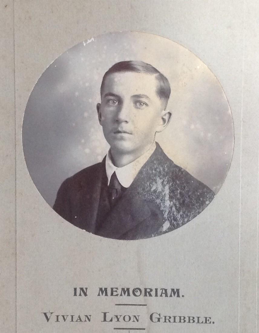 Vivian Gribble’s memoriam card (October 1914). Vivian was the second son to James Gribble to have passed away.