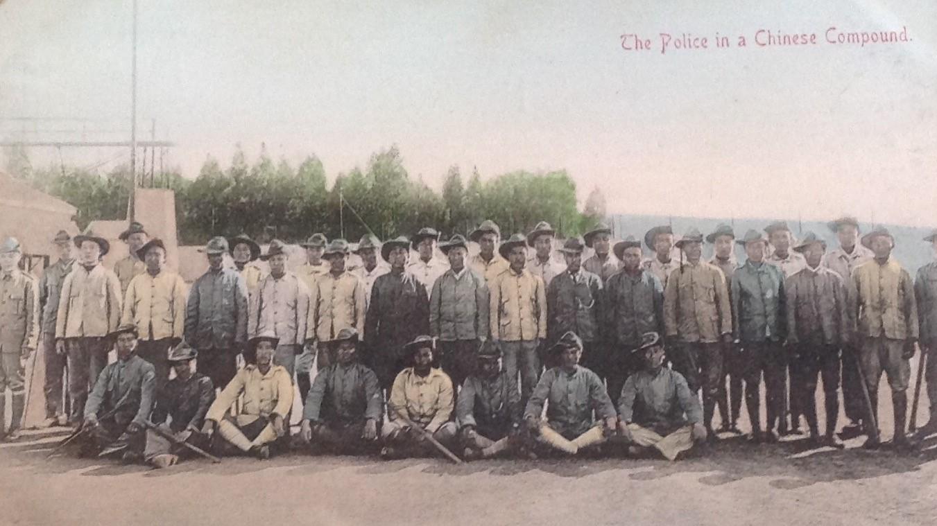 Hand coloured picture postcard showing Police based in the Chinese Compound. Card number 2069 was published by Sallo Epstein & Co (circa 1900).