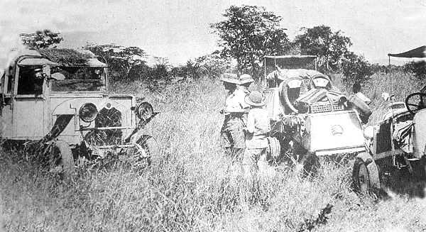 Early in July the Court Treatt company reached the southern shores of Lake Tanganyika. Here they turned east to travel through a swampy area. They had to cross about 200 rivers. Approximately 180 had bridges, made from tree stumps. Most of these had to be rebuilt before the Crossleys could attempt them.