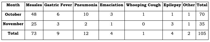 Unsanitary, overcrowded, and poorly managed, the camp experienced severe epidemics of measles, pneumonia, and dysentery. Malnutrition and polluted water worsened conditions. October and November 1901 were particularly deadly: