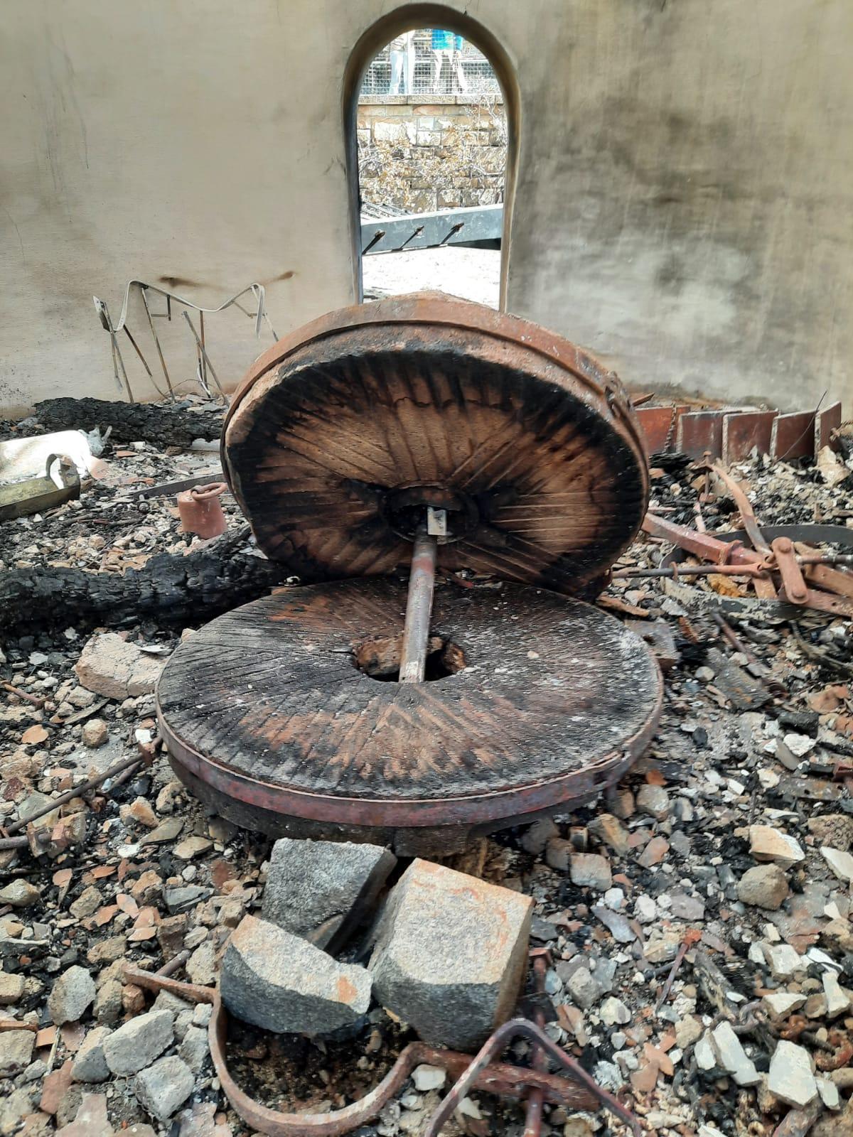 Upper and lower mill stones. All that was left after the fire. (John Hammer)