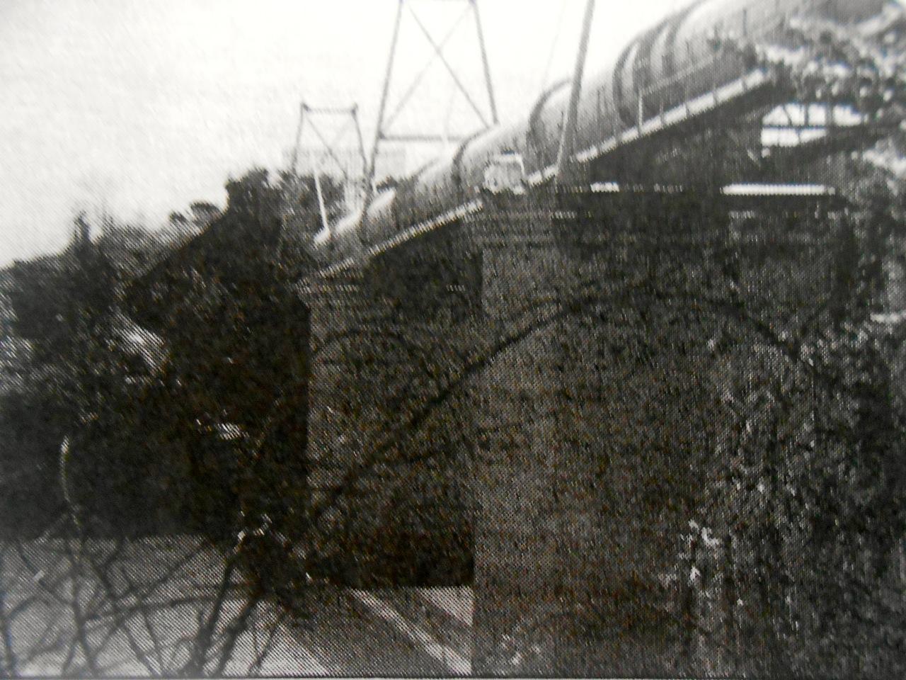On 5 November 1892 the first train steamed across the completed bridge. Since then the structure was continuously in use until 1955, when a new double-track railway bridge was built further downstream. The six girders were removed, but the abutments and piers were left standing, now carrying a huge pipeline across the Vaal.