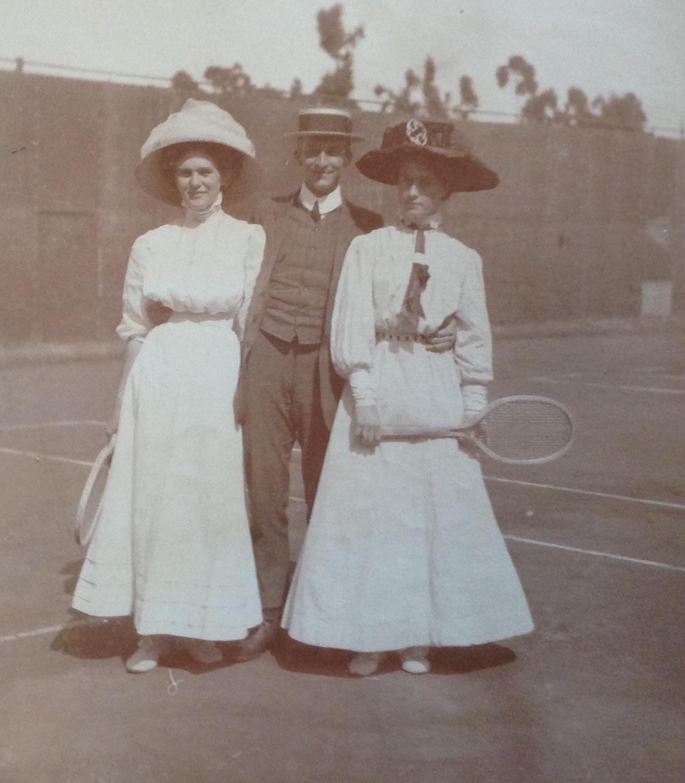 The prominent unidentified female player. It is thought that the album may have belonged to her. She is often seen with Charles Winslow on other images. Although Winslow later married Olive Matthias, the deduction was made that the “prominent lady” is not Matthias, but possibly Miss Raymond