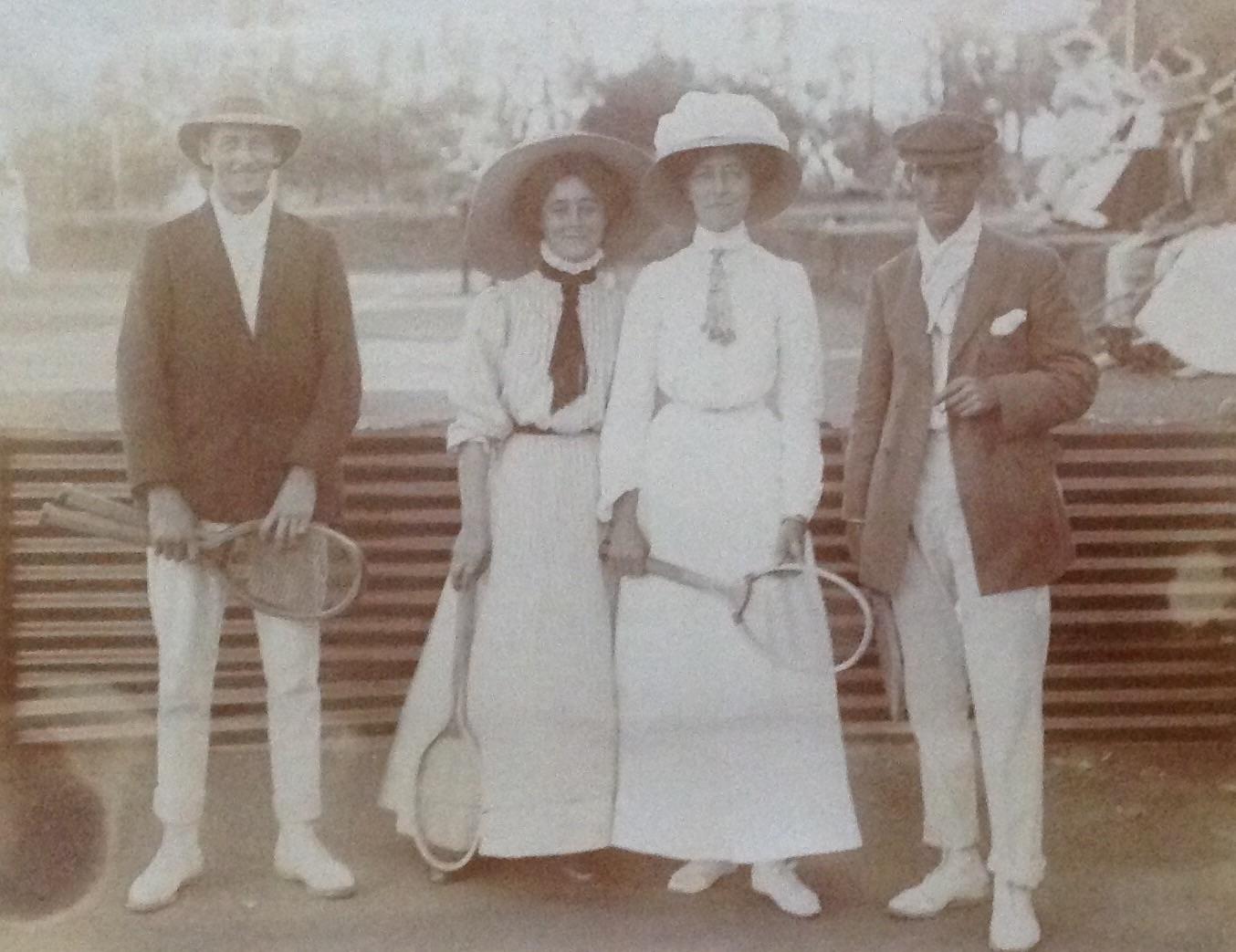 Mixed doubles finals: Cochran and Olive Mathias (winners) with Watson and Miss Stevens as runners-up. Considering Miss Stevens facial expression (dressed in black), she seems to have been a sore loser