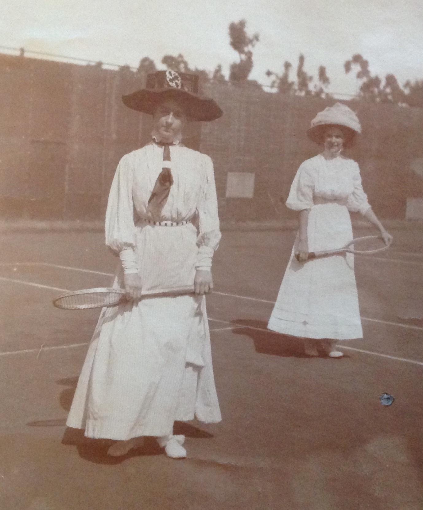 Miss V Millar & Mrs Johnstone Brown in their tennis gear. Considering the bulky tennis attire at the time, the game must have been much slower compared to today’s standards