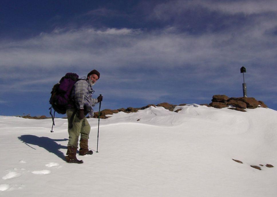 Where did the name Mont-aux-Sources come from? The slopes of the mountain are the sources of four rivers, the Eland going north and eventually into the Vaal river, the Tugela flowing east to the Indian ocean and the Khubelo and Khubedu being part of the Orange river system. The picture below shows the approach to the summit of Mont-aux-Sources during a snow rich winter.