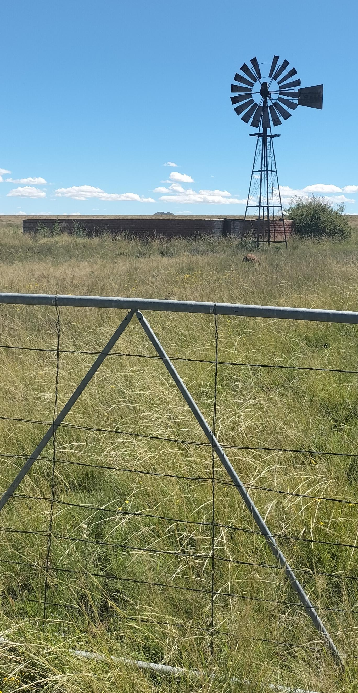 This windpump structure was cut from its cemented base. Why? The cement dam, which seems relatively new, is in good condition - Near Bethulie.
