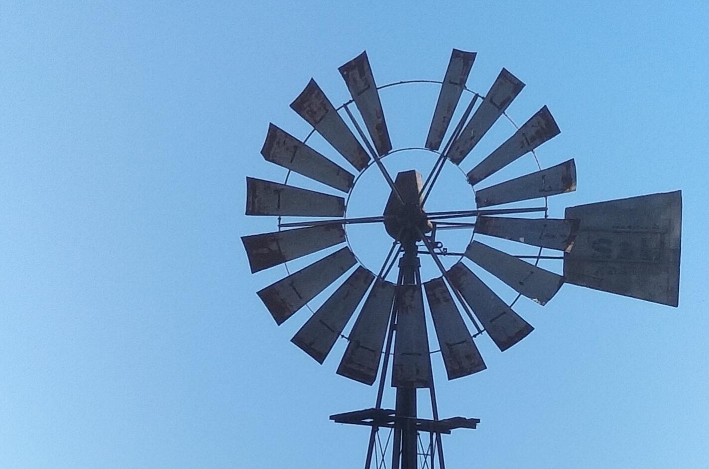 A windpump with a story. The location of a windpump is taken for granted, yet much effort has gone into finding the optimal spot to start drilling for water.