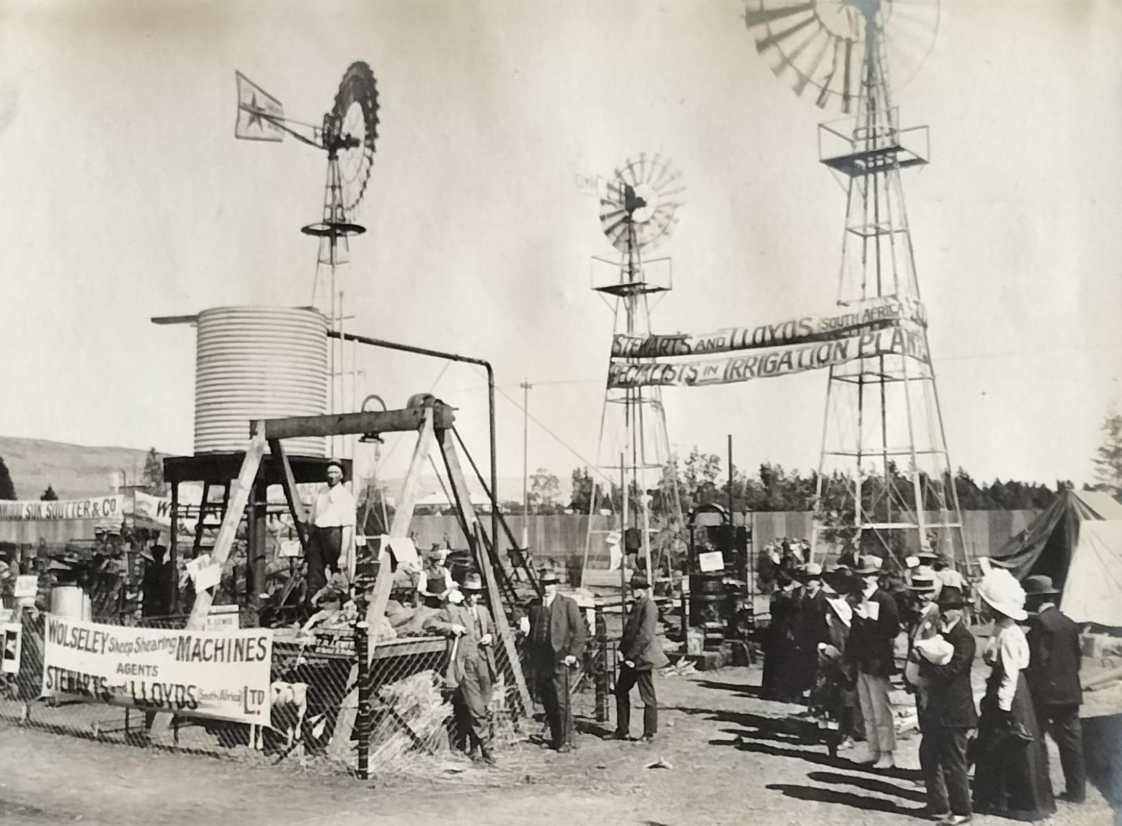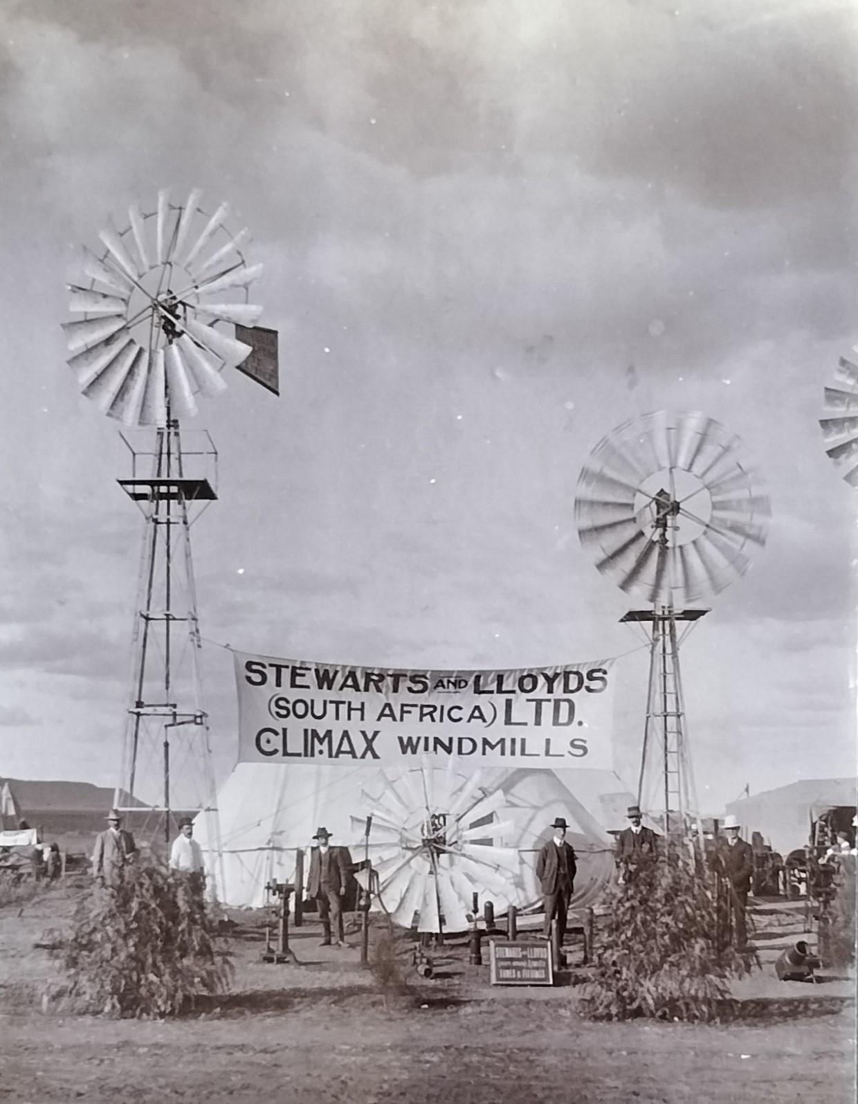 Stewarts & Lloyds windpumps exhibited at the 1909 Bloemfontein agricultural show