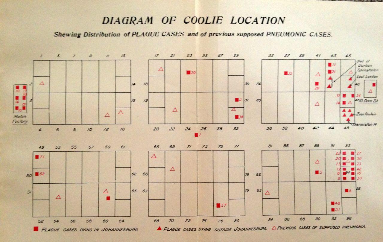 From 11th February, 1904, Gandhi was writing to Dr Porter about "the shocking state of the Indian Location", where "rooms appear to be overcrowded beyond description [...], sanitary services are irregular [...] and worse than before". He went on to state: "From what I hear, I believe the mortality in the location has increased considerably, and it seems to me that, if the present state of things continues, [an] outbreak of some epidemic disease is merely a question of time".