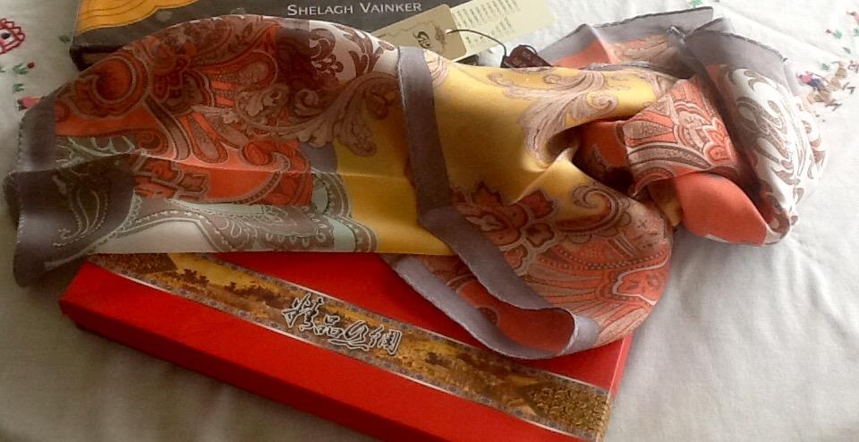 A beautiful silk scarf from China. A recent gift in my wardrobe.