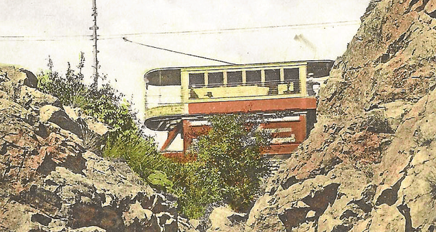 Postcard of the Tram above the Orange Grove Waterfall (A Johannesburg Album - Oscar Norwich)