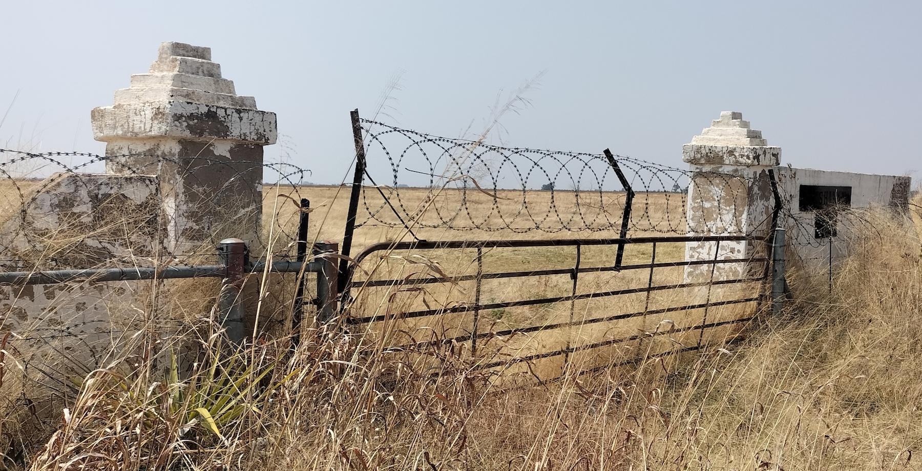 Totally overgrown – a vehicle entrance between Magaliesburg and Rustenburg. In the South African context, surprisingly the steel gates have not been removed for recycling.