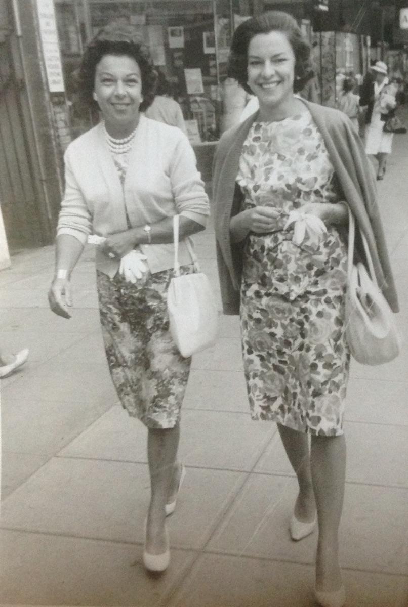 Two elegant ladies walking down a street in Durban. They can clearly be seen “courting” the camera.