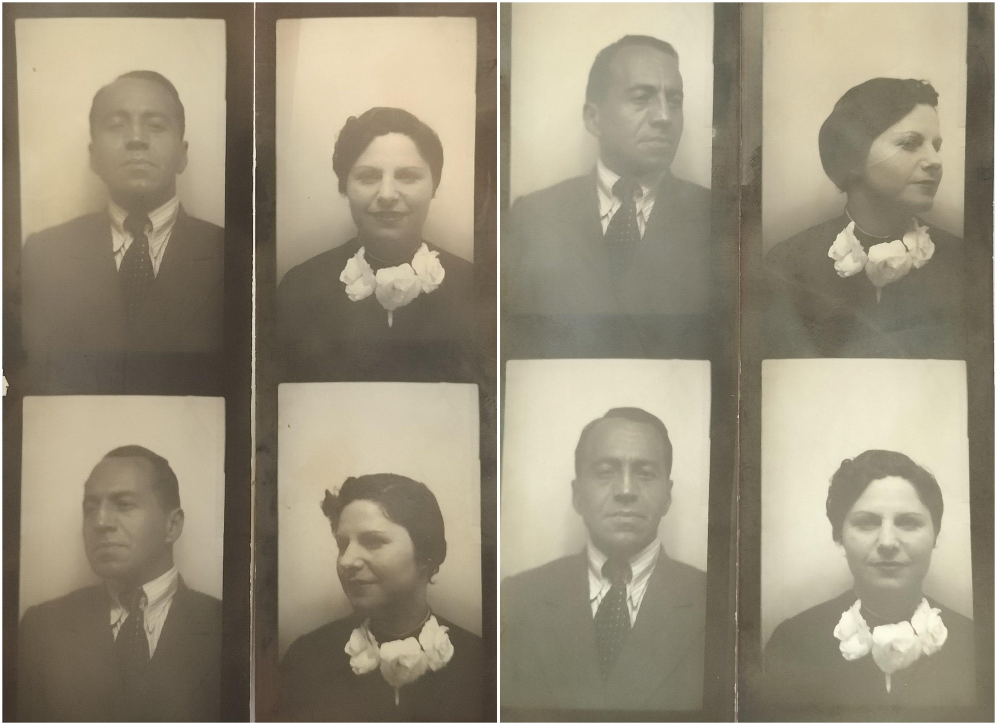 Strip of 4 photobooth photographs of an unknown couple (circa late 1960s)