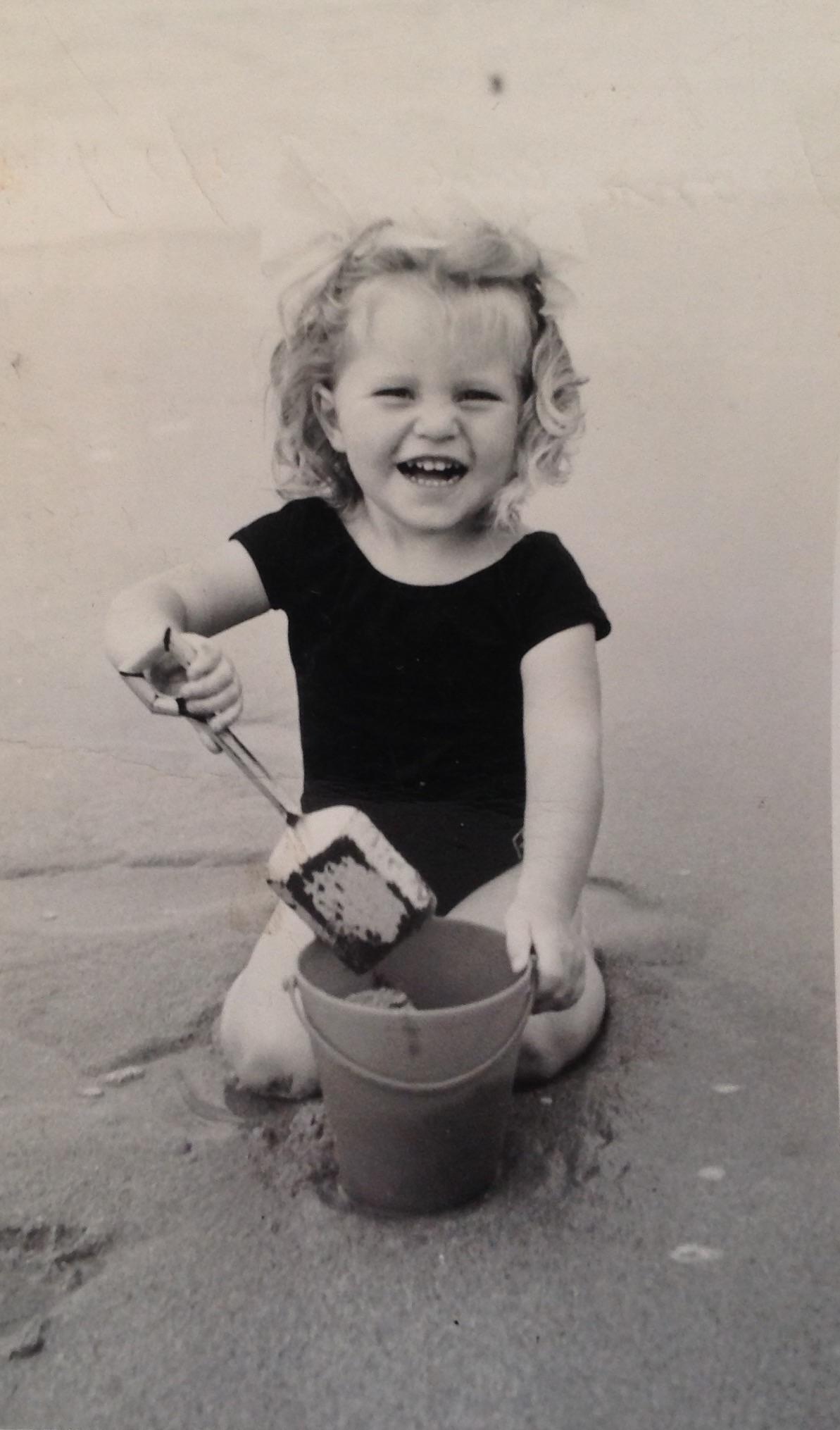 Young Fiona (2 and a half years old) with her bucket and spade – Unknown location and photographer – Circa late 1950s