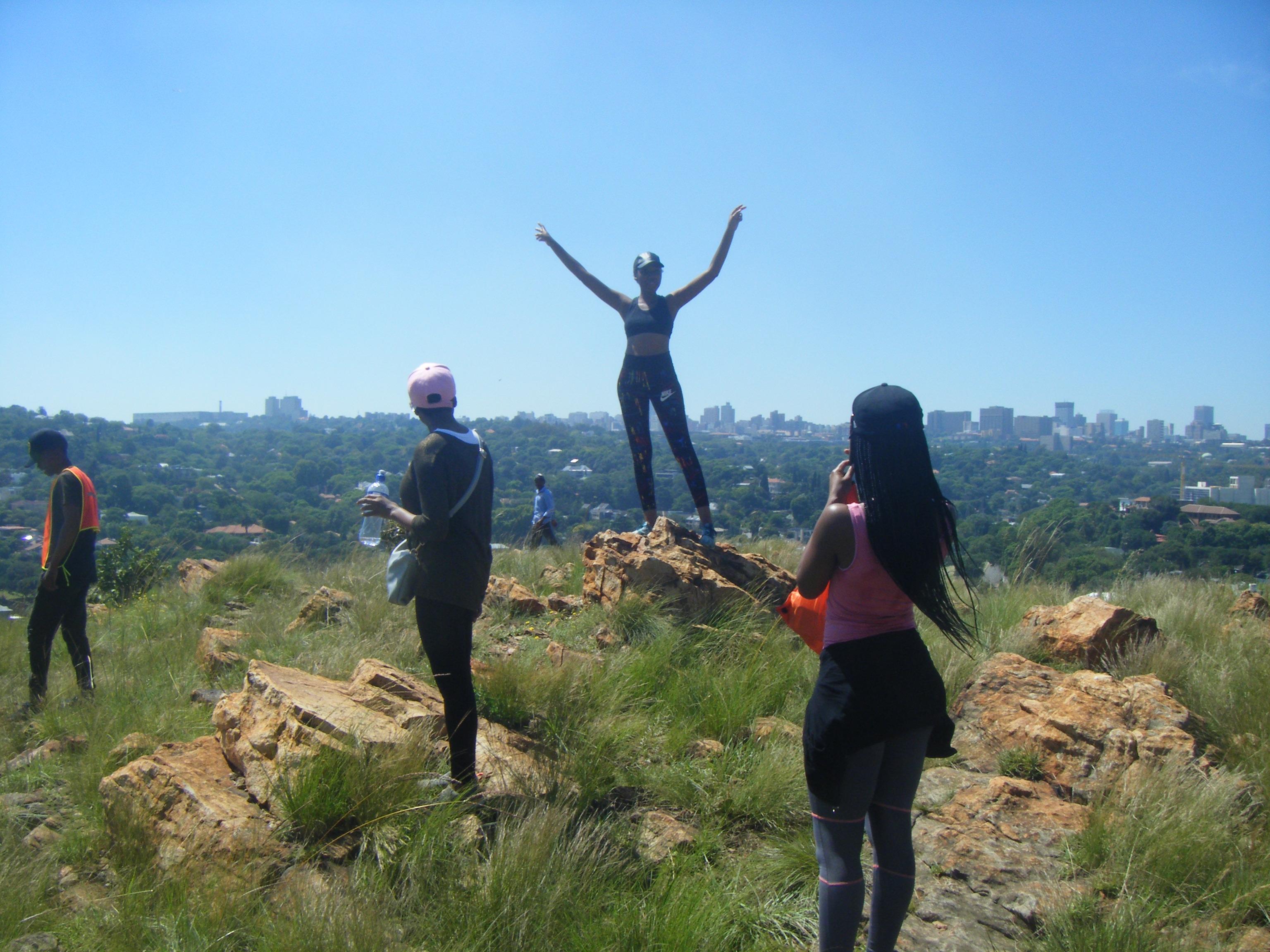 The interest in hiking and exploring nature has continued. For instance, on Heritage Day this year, nearly 100 hikers enjoyed a guide-accompanied 8km hike through Melville Koppies Central and East. How could we do an 8km hike in a nature reserve just five minutes from the Johannesburg CBD? Well in the Grand Old Duke of York style, hikers were led up and down scenic paths, along the Westdene Spruit bank, up steep rocky inclines, through forested areas and sweeping grasslands. A few hikers peeled off after the Lecture Hut stop. The rest continued and explored Melville Koppies East, the public open space section, which has beautiful panoramic views of the city.