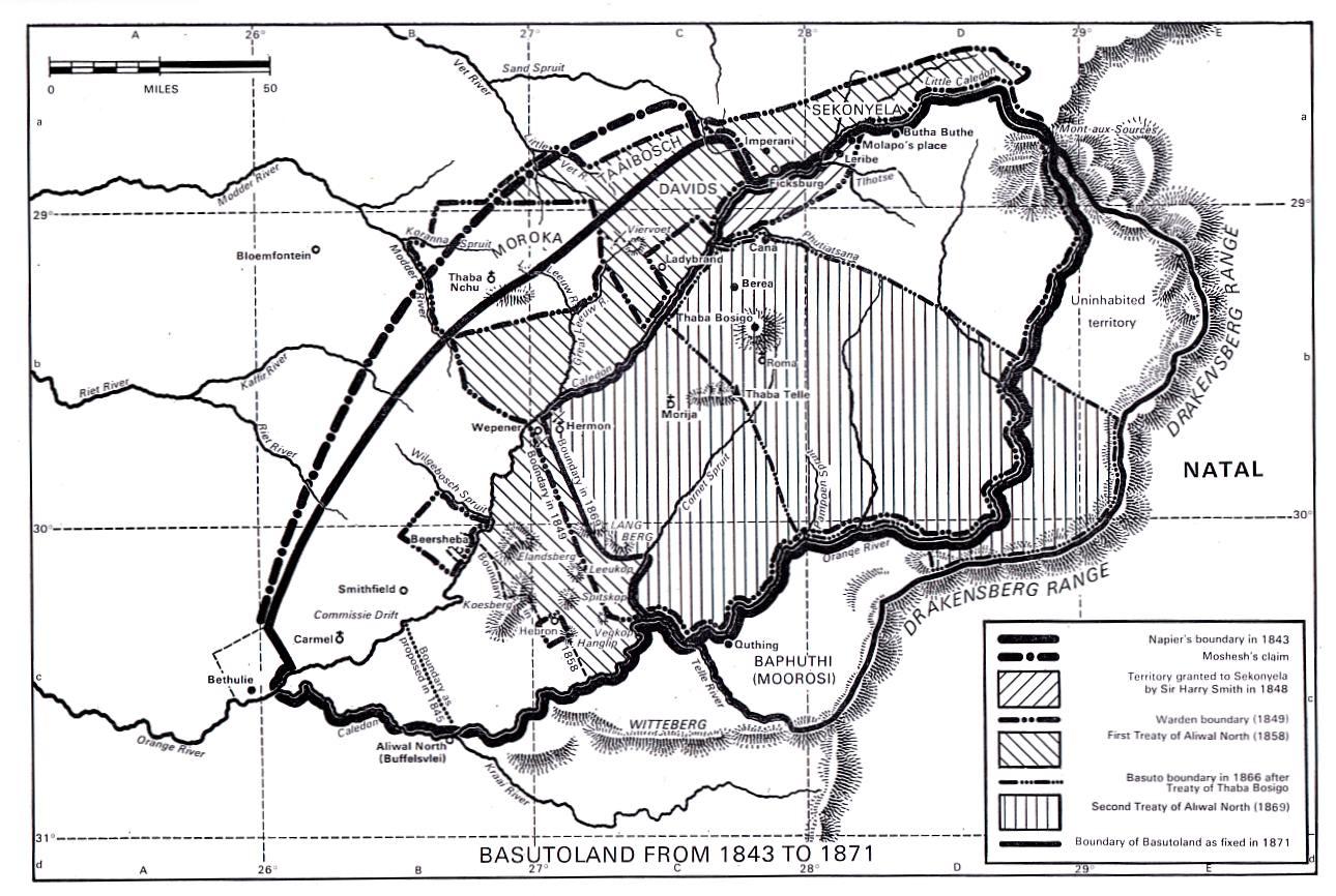 Again Moshoeshoe kept on, not wanting to accept these borders and thus the 3rd Basuto War started in Aug 1867 and lasted to March 1868. It was ended when Britain declared the protectorate of Basutoland. The Basutos came under British protection and were thus off limits to the Free State. The border question was again negotiated and a treaty signed at Aliwal North. It defined the borders as they stand today.