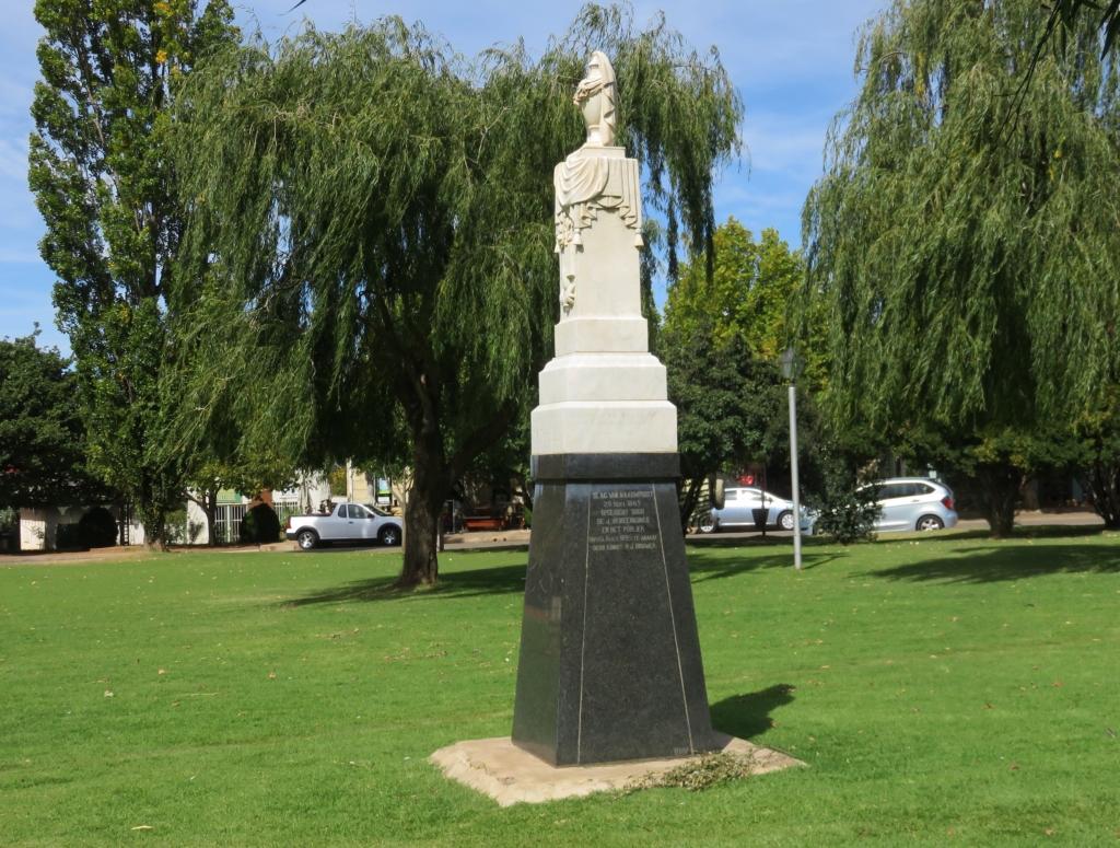 There is a monument to the Basuto War in the central square, that is President Square, of Clarens. The inscription reads: Slag van Naauwpoort; 29 Sept 1865; opgericht door; de J.Vereenigings; en het publiek; onthul 16 Des.1895 te Ararat; deur Komdt. H.J.Bruwer and on the opposing side: heronthul 9 Nov.1962; deur staatspresident; C.R.Swart; tydens Clarens; se goue jubelium; in dankbare nageslag; bring hulde.