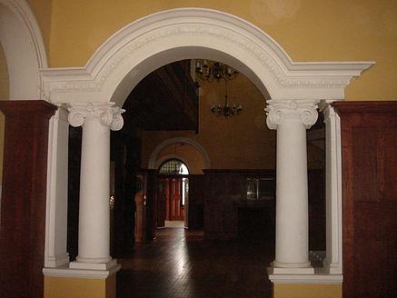 He has replaced inappropriate lighting with imitation period lighting which blends well.