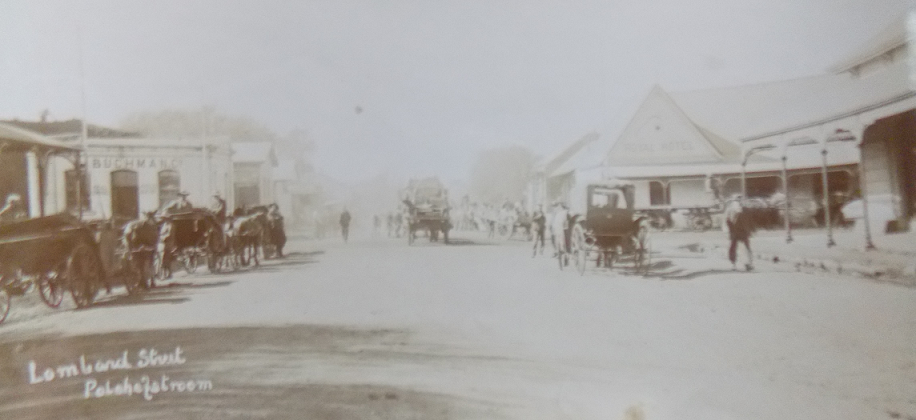 Photo of Lombard Street with the Royal Hotel to the right as it looked at the time Woite was shot as a traitor. The view is in the direction of the Mooi River where Woite was initially buried. The execution might have taken place where the River Walk Centre is today. (Potchefstroom Museum)