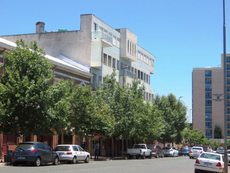 A view down Commissioner Street between Wolhuter (Margaret Mcingana Street) and Alexander Street - the sense of place is visible in the wide one way street, the generous proportioned pavement and the plane trees which remarkably survive in the inner city. To the right is a side view of the forbidding and notorious in apartheid days, John Vorster Square. (Kathy Munro)