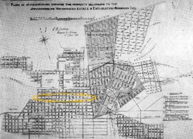 The original farms of the Witwatersrand and their owners are listed as Doornfontein owned by Mr Bezuidenhout, Elandsfomtein (Viljoen ), Turfontein (a Mr Ras and others), Braamfontein (Lindigue (sic)), Langlaagte and so on: the farm owners were beguiled and cajoled by the adventurers, the prospectors and the financiers who made offers too good to be resisted. Entrepreneurs such as Meyer, Charlton, Knights, Ferreira, Marshall, the Struben brothers were the first to stake mining claims and were quickly followed by those with bigger bank accounts, men such as Rudd, Rhodes, J B Robinson, Dr Sauer. All these names drop into the Cowin 1889 account. The third component was law and order represented by the government surveyor, Johan Rissik. A magistrates court was an early institution. The earliest of townships were declared by 1889... Doornfontein, Fordsburg, Jeppe Township emerging around and beyond the camps, Ferreira's Camp and Natal Camp and Marshall's Town.