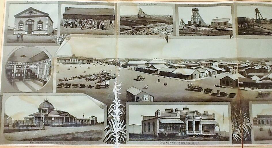These two souvenir booklets give a glimpse of the speedy emergence of Johannesburg as an orderly organized town, showing the extraordinary rapid shift from tented camp, to sod hut, to iron shanty to modern structures in brick stone and cement. It was a city built on gold (in 1888 the total production amounted to 243, 152 ounces of gold ).