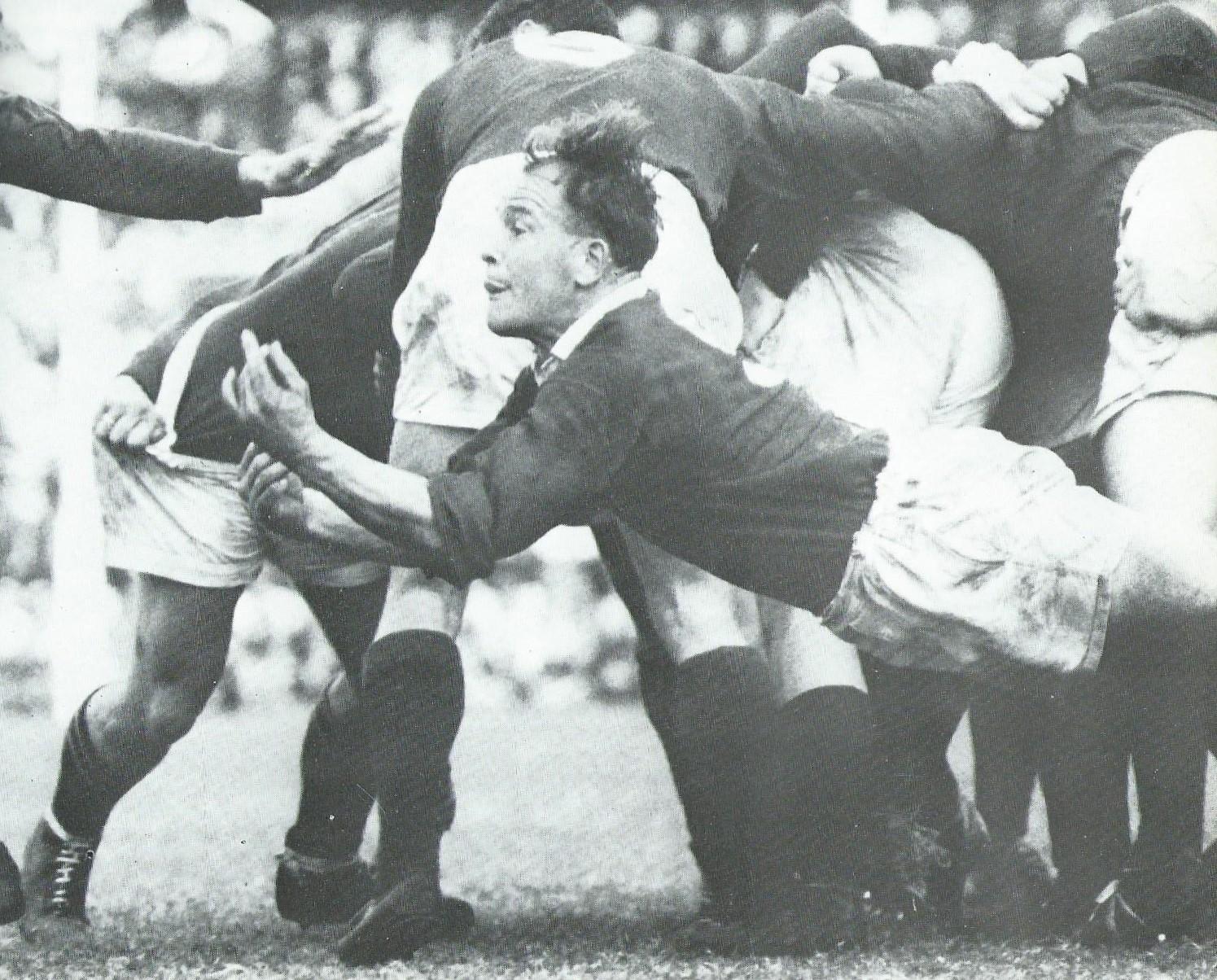 Dickie Jeeps dive passing for the Lions 1962 v Boks. He made 3 tours for Lions 1955 (SA), 1959 (NZ), 1962 (SA) . I played against him as well as Tony O’ Reilly in 1969 when Harrow RFC opened their new clubhouse. Picture from Springbok Saga by Chris Greyvenstein 4th Edition 1992