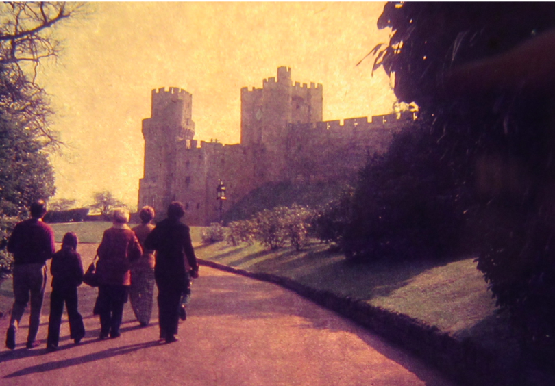 Heritage as tourism asset. Family group visiting a British castle. It is a risk that these types of assets could be lost due to climate change. (Valerie Strever)