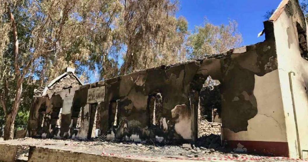 Before the fire, the school hostel complex comprised three structures, two being former school buildings dating back to the 1840’s and later converted to hostels for the children of the numerous outlying settlements. The third was a dining hall constructed of cement bricks dating from between the mid-to second half of the 20th C. Like the Creche building next to the Community Hall, the dining hall’s cement bricks did not fare well in the fire and the building had to be demolished. (ARCON, 24 January 2019)