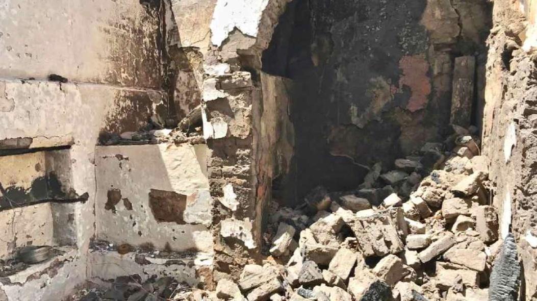 The kitchen hearth of Leipoldt House after the fire which collapsed after the supporting bressumer beam burned through. (ARCON, 24 January 2019)
