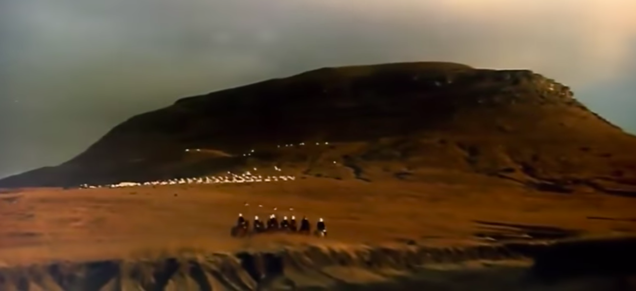 By 7.30 we were ready. We drove to a point around the back of the hill, completely surrounded in mist. Each person had a load to carry. We had two 35mm Panavision movie cameras and all their equipment. To my surprise, Peter MacDonald, who is not a big man, heaved a massive tripod on his shoulder and set out behind me up through the rocks and heavy bush into the mist. We made the summit, heaving and sweating, in three quarters of an hour and had to huddle in the lee of the rocks for nearly two hours until the mist cleared and we could shoot. It was the willingness of these two directors to muck in and do everything they expected of their team, that created a wonderful esprit de corps amongst the second unit. I don’t recall them ever taking one Sunday off once the filming got under way. What a farewell party they gave their unit crew in the final week! I will never forget it.