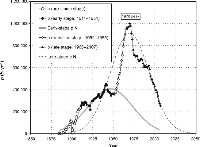 » History of Witwatersrand Basin gold production rate - Christopher JH Hartnady via Research Gate.png
