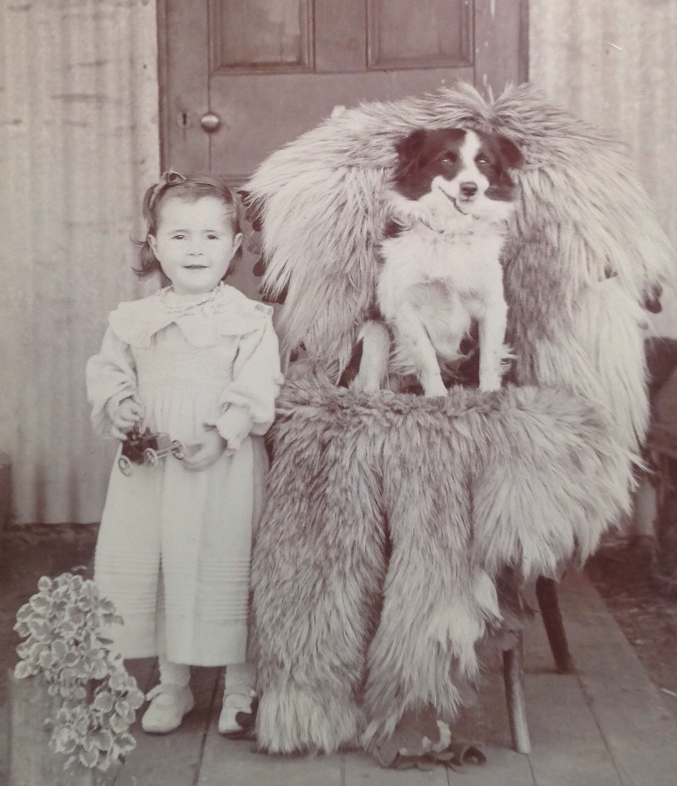 Photograph of girl with tin car and fluffy dog circa 1905 via Carol Hardijzer.jpg