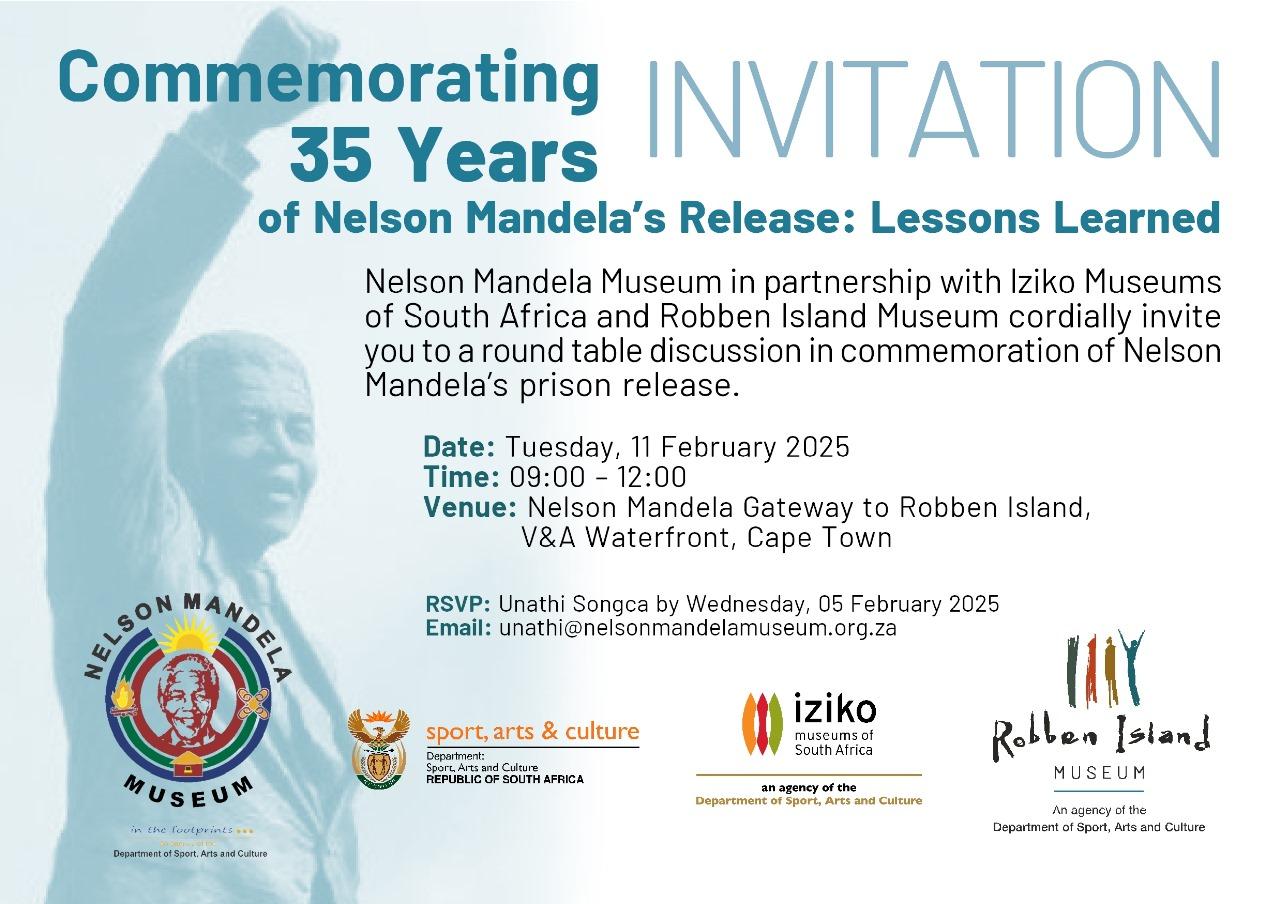 The Nelson Mandela Museum, in partnership with Iziko Museums of South Africa and Robben Island Museum, invites you to a round table discussion reflecting on the lessons learned from Nelson Mandela’s historic release from prison.