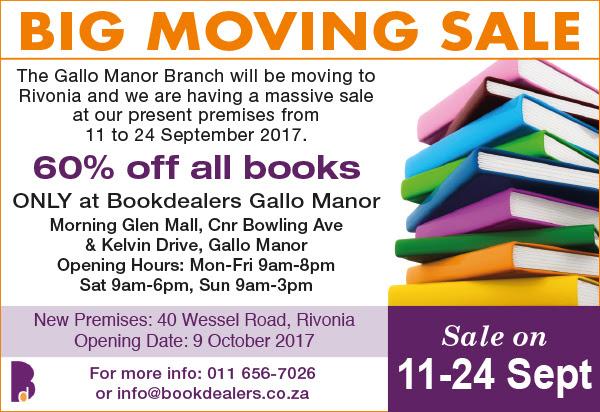 The Gallo Manor Branch will be moving to Rivonia and we are having a massive sale at our present premises from 11 to 14 September. Check out the image below for all the details.