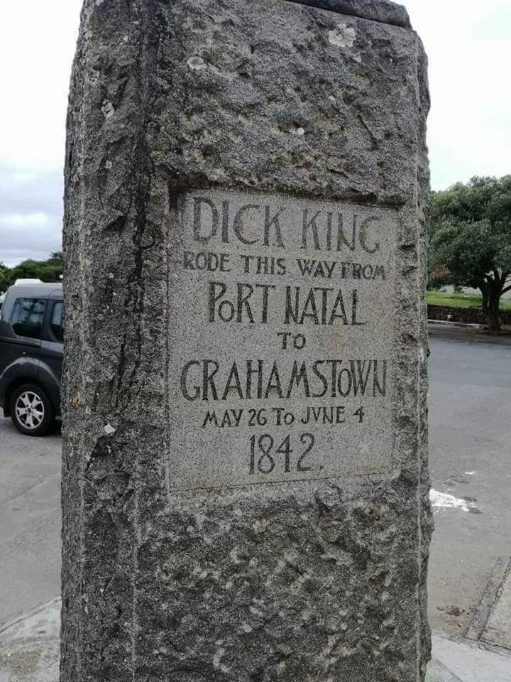Dick King was also remembered in a series of 10 granite road markers/pylons placed along the route. These were erected in the 1940s tracking the journey of Dick King and Ndongeni. They were sited at Isipingo Beach, Port Shepstone, Umzimvubu River, Port St Johns, Old Bunting Mission, Mancam Peddie and Trompetter’s Drift. I do not know whether these pylons are still extant perhaps Heritage Portal readers can contribute more to this account. [Editor's note - William Martinson has captured entries for all ten of the granites markers on Artefacts. All still exist - one relocated.]